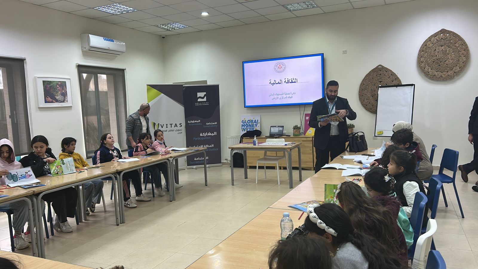 شاركت شركة فيتاس للتمويل الأصغر في النشاط المنفذ بمناسبة أسبوع المال العالمي والذي يستهدف فئة الأطفال وطلبة المدارس، والذي تم تنظيمه من قبل البنك المركزي في مركز الملكة رانيا للأسرة والطفل يوم الاثنين الموافق 6-4-2026.