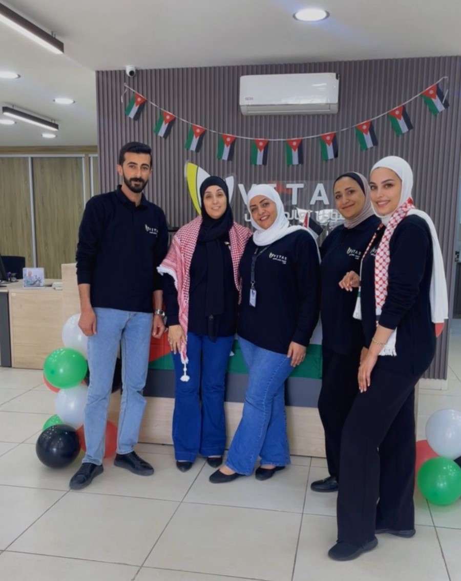 Vitas Jordan branches celebrated Jordanian Flag Day in an atmosphere of pride and belonging, as branches were decorated with Jordanian flags, expressing appreciation for this national occasion.